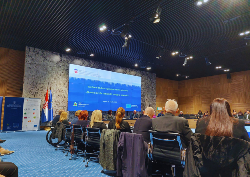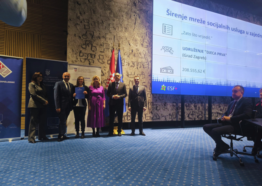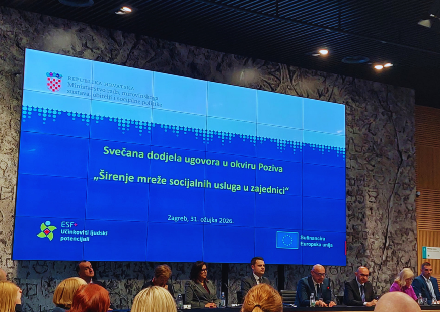U organizaciji Ministarstva rada, mirovinskoga sustava, obitelji i socijalne politike danas je održano svečano potpisivanje ugovora o dodjeli bespovratnih sredstava u okviru poziva „Širenje mreže socijalnih usluga u zajednici“, iz Programa Učinkoviti ljudski potencijali 2021.–2027. (ESF+).